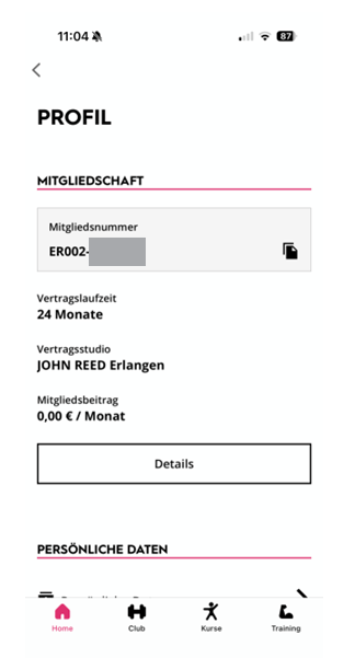 - In der John REED App im "Profil"-Bereich