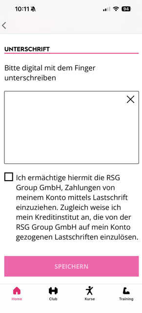 · Unterschreibe darunter, setze den Haken zur Bestätigung und tippe anschließend auf „Speichern".
